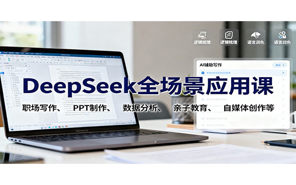 这是一门专为现代人打造的​​DeepSeek全场景AI实战课程​​。课程从基础入门出发,系统覆盖​​职场写作、数据分析、