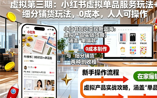 虚拟产品变现是我们持续深耕的领域。第一期(淘宝虚拟资料)与第二期(拼多多虚拟U盘)均取得了优异的反馈,特别是第二期的U盘玩法,本次将同步更新优化版。​​前三期内容并行不悖,均可操作​​,而本次第三期将聚焦于​​小红书虚拟店铺​​这一新兴蓝海。