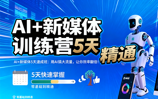 从工具到实战,零基础高效掌握智能营销新技能 课程简介 本训练营专为希望快速入门AI与新媒体的学员设计。课程聚焦核心实战技能,摒弃冗余理论,通过4天AI工具学习与1天新媒体整合应用,带你系统掌握从AI基础到内容策划、脚本创作的完整工作流。学完即可熟练运用智能体提升百倍效率,并精通抖音、小红书、视频号等高性价比获客平台。 课程亮点 • 即学即用:提供全部智能体提示词与安装包,上手即实战 • 聚焦核心:只学最必要的AI技能,拒绝冗余内容 • 效率倍增:借助AI优化策划、创作流程,大幅降低人力成本 • 平台全覆盖:重点突破抖音、视频号、小红书等主流短视频平台 五天课程安排 Day 1:AI基础入门 • 精准学习AI核心功能,不多学一点无用知识 Day 2:通用智能体实战 • 安装与配置通用智能体,最大化发挥其策划辅助能力 Day 3:策划与脚本工作流 • 掌握从策划到脚本生成的完整AI工作流程 Day 4:提示词精通 • 深入提示词工程,从入门到灵活运用 Day 5:定制智能体开发 • 打造专属智能体,即使陌生行业也能轻松应对 课程资源 • 视频课程 + 飞书资料库(含提示词、工具包、案例模板)